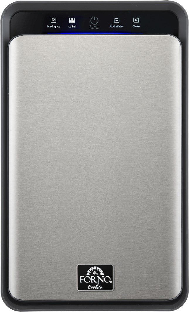 The control panel offers simple one-click start operation and four clear status indicators: Making Ice, Ice Full, Add Water and Clean.