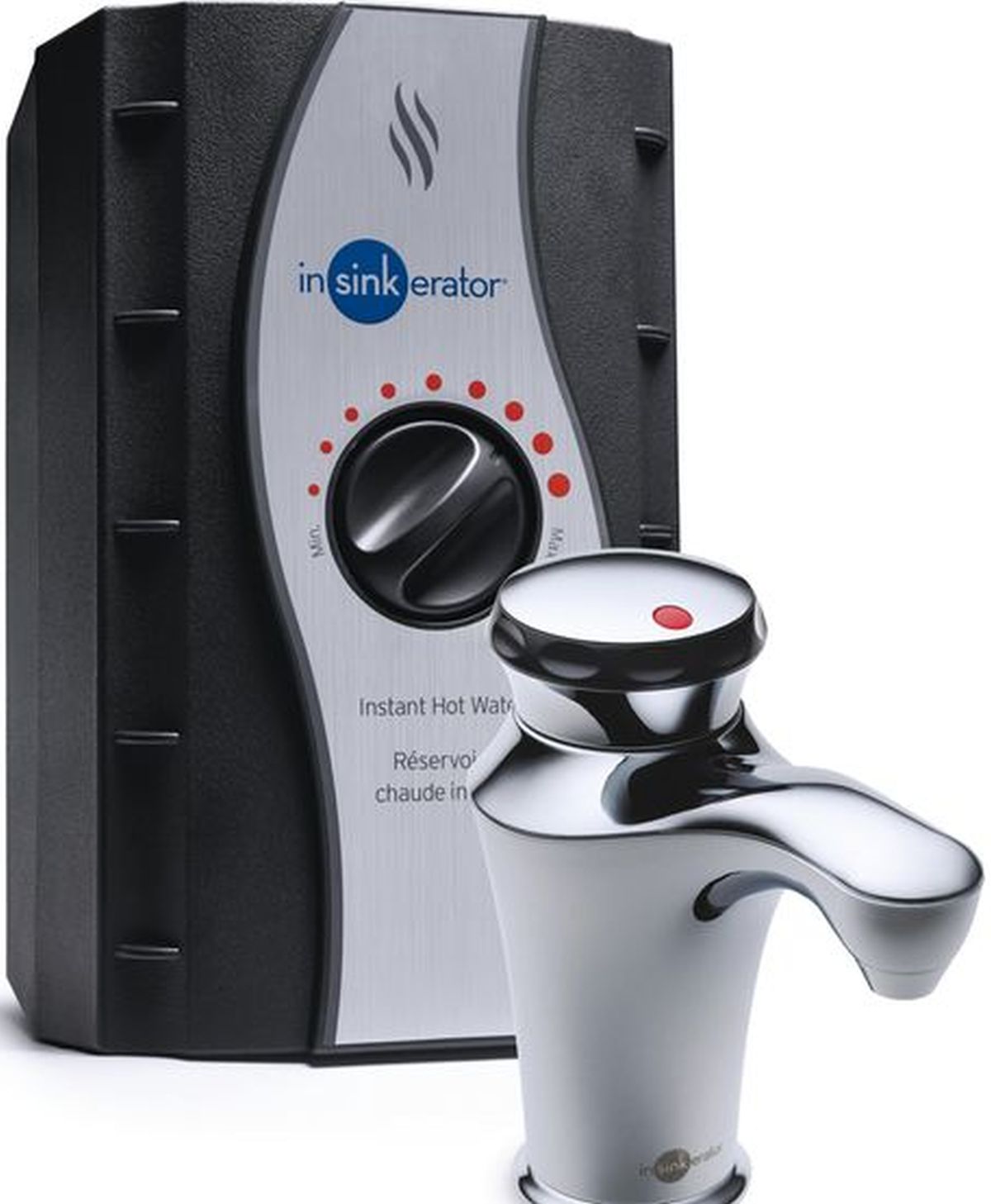 Includes chrome finish instant hot water dispenser and 2/3 gal. stainless steel hot water tank