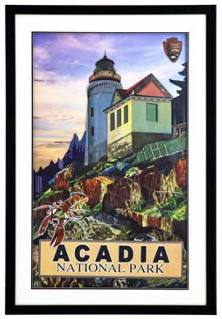 Set on a Bass Harbor Head lighthouse motif matte and black frame