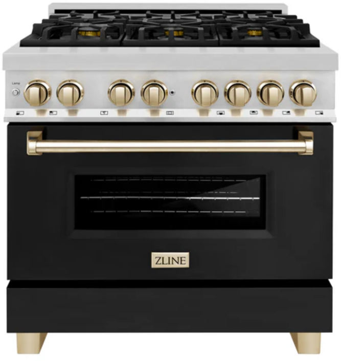 Luxury isn’t meant to be desired - it’s meant to be attainable. The ZLINE Autograph Edition 36" 4.6 cu. ft. Dual Fuel Range with Gas Stove and Electric Oven in Stainless Steel with Black Matte Door and Polished Gold Accents (RAZ-BLM-36-G) provides a professional culinary experience by pairing unmatched performance with personalized touches.Read More